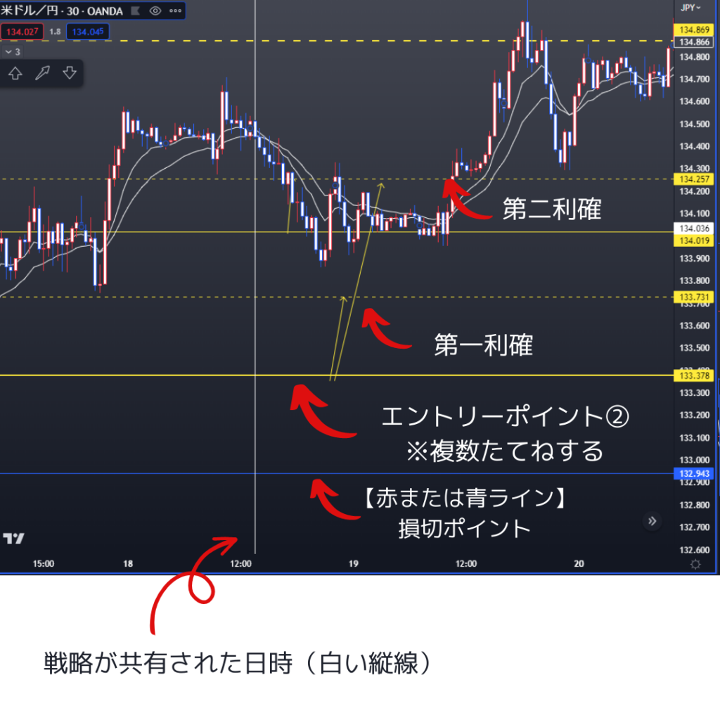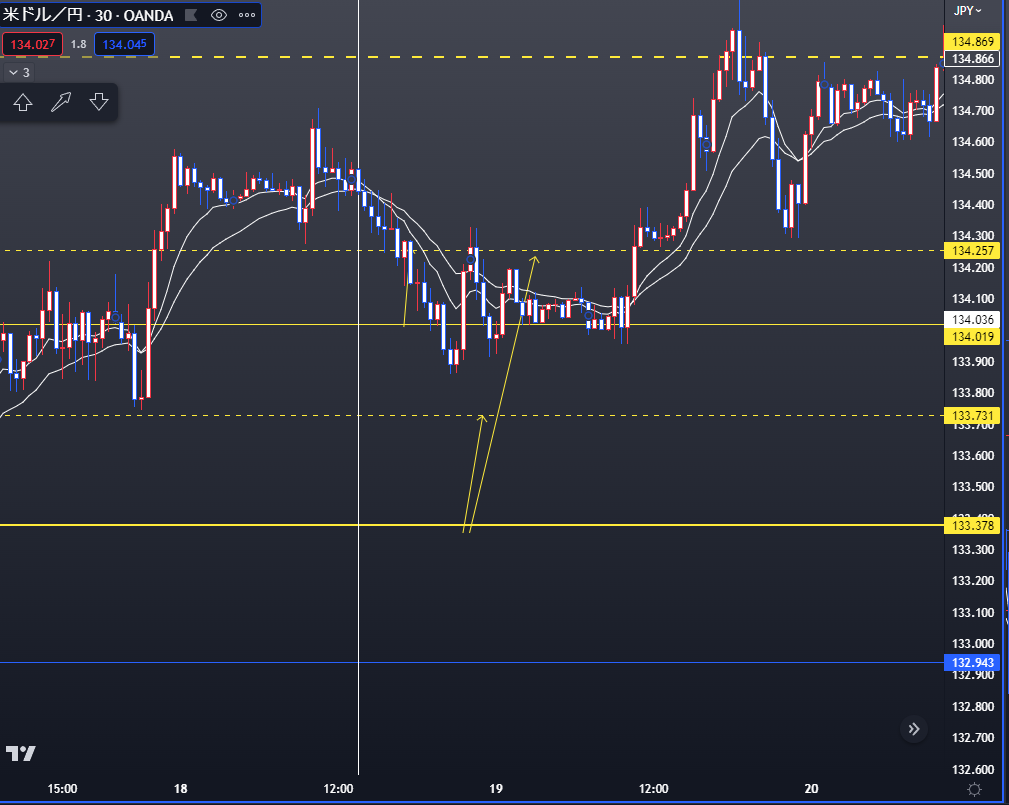 このチャート(↓)では、黄色い実践が2つありますね。つまり、エントリーポイントが2つあります。