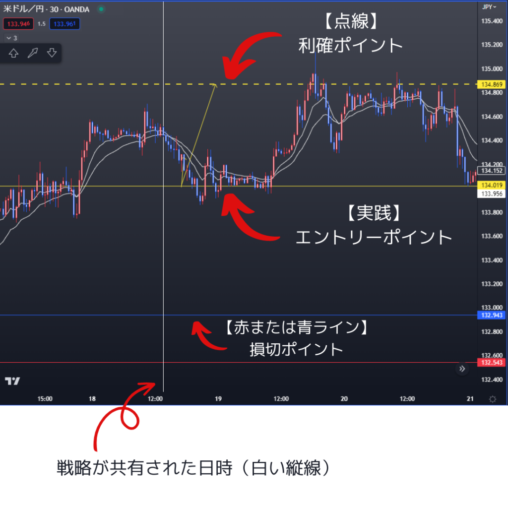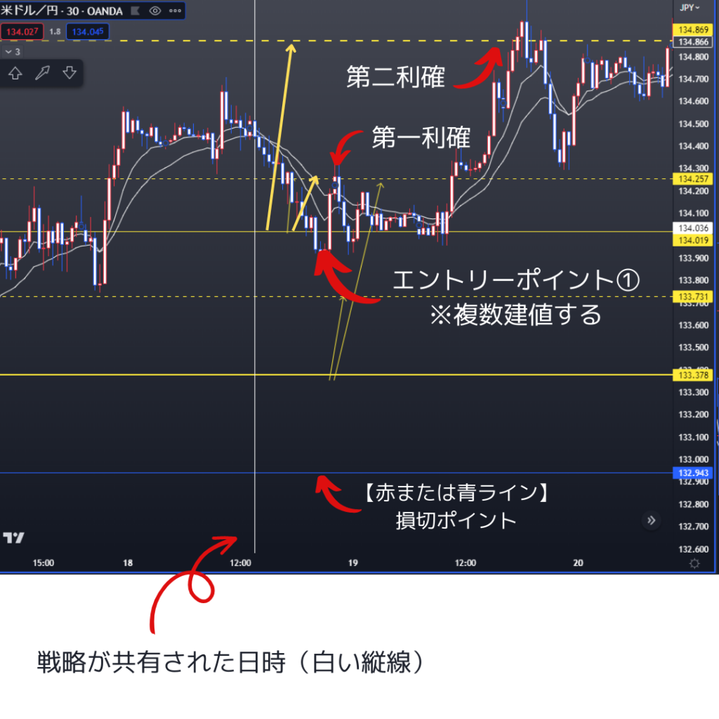 もし、エントリーしてたらエントリーした実践の次の点線が第一利確のポイントです。