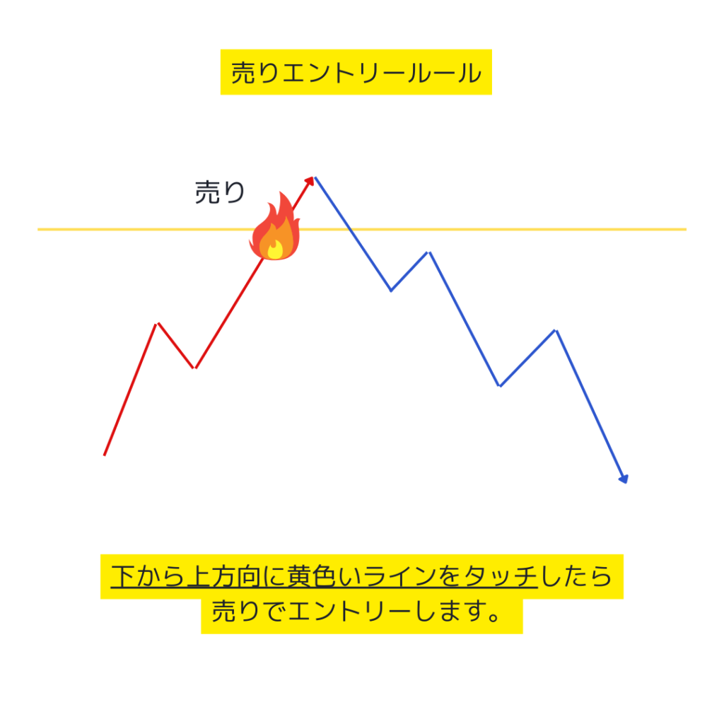 下から上方向に黄色いラインをタッチしたら「売り」でエントリーする。