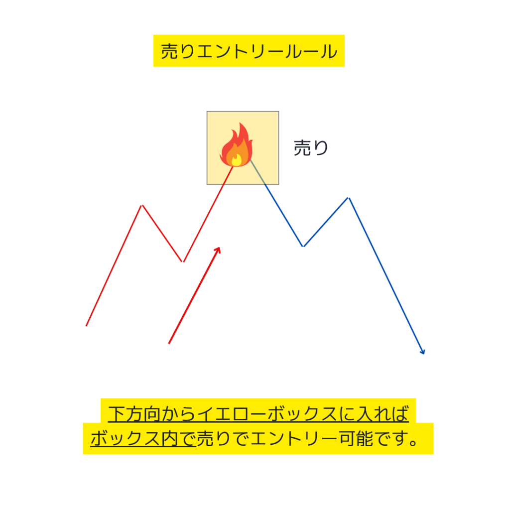 下から上方向に黄色いボックスに入れば「売り」でエントリーする。